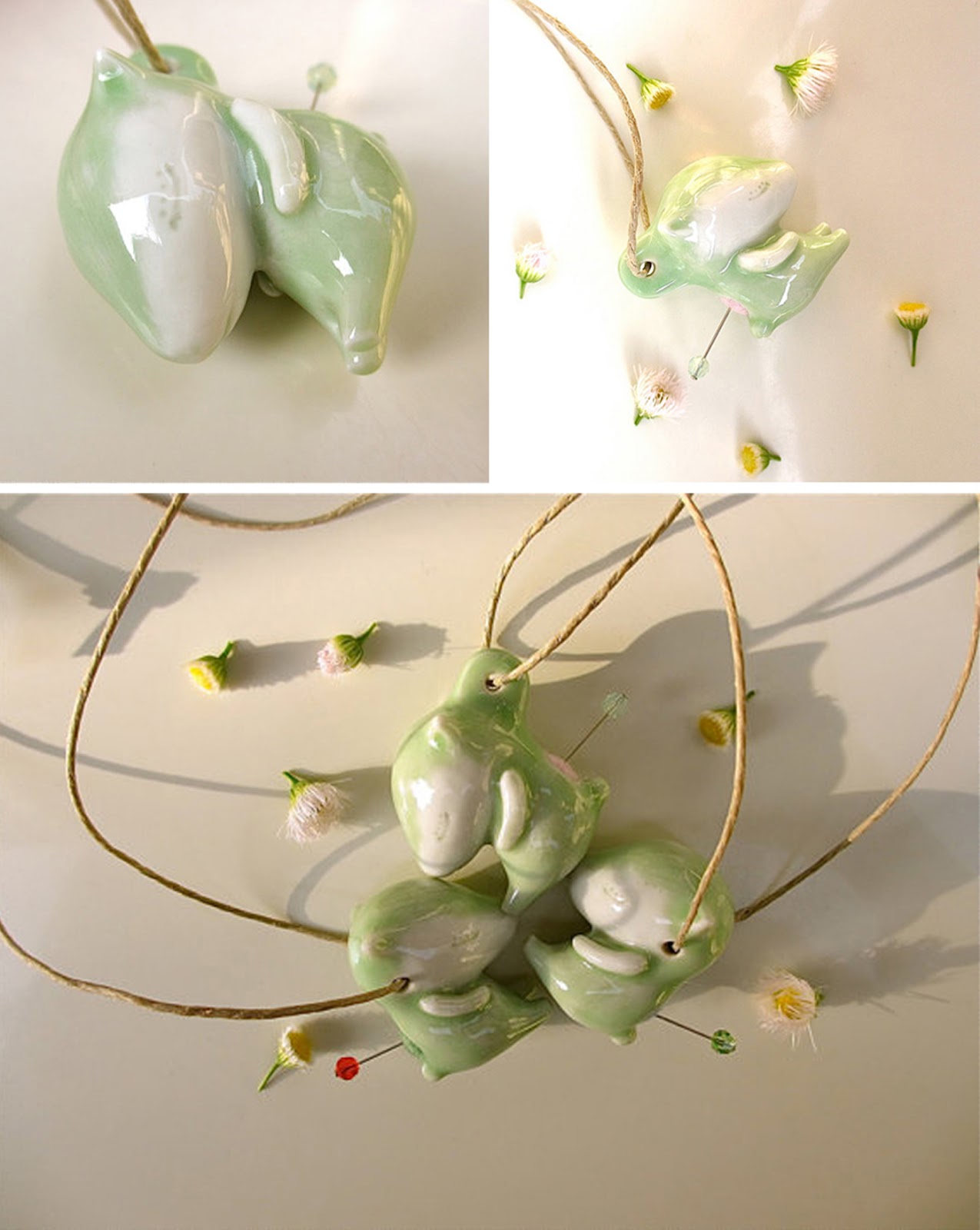 Porcelain  birdy neckaces by Shendoe. I love  vintage ceramic decals here.